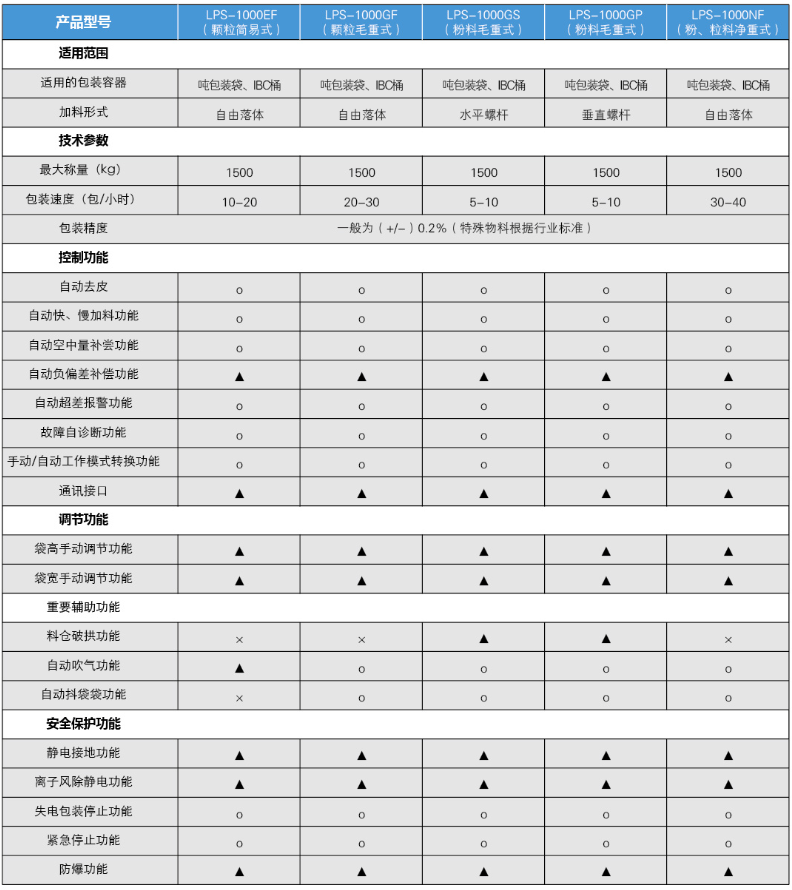 注:“o”表示標(biāo)準(zhǔn)配備的功能;“▲”表示需要選購的功能;“×”表示不具備的功能